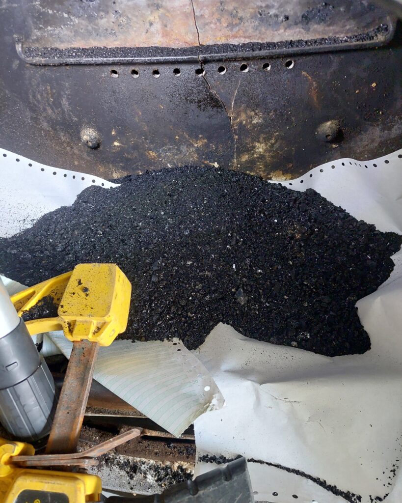 La quantité de suie récupérée avec le deuxième tour fait plus d’un tiers de la première, démontrant la qualité du ramonage rotatif.